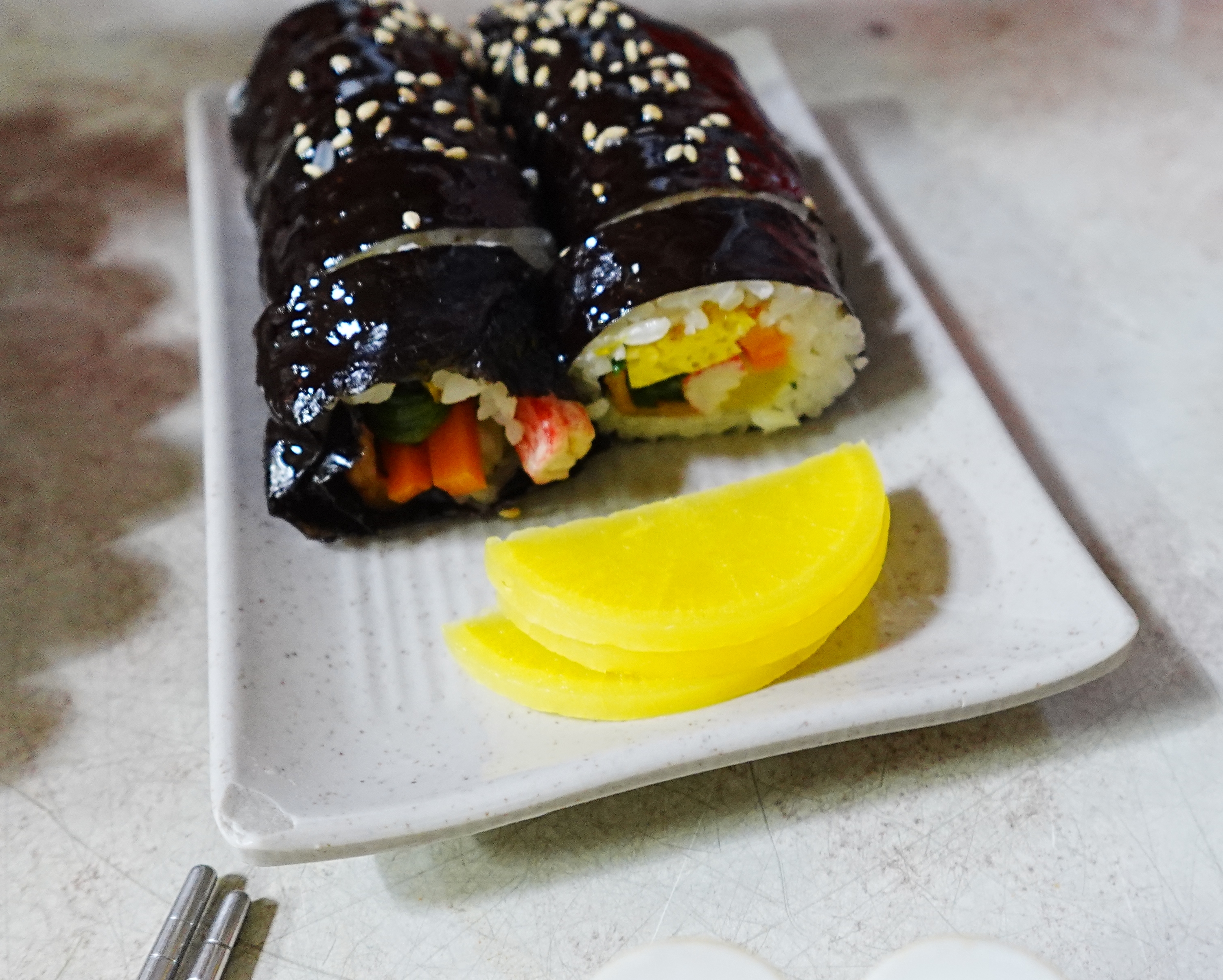- 김밥: 특이하게도 김밥이 절반씩 나눠져 제공되는데, 단무지와 함께 먹기 좋게 나뉘어져 나와서 먹기 편했어요. 일반 김밥이지만 정성 가득한 맛이 인상적이었어요.