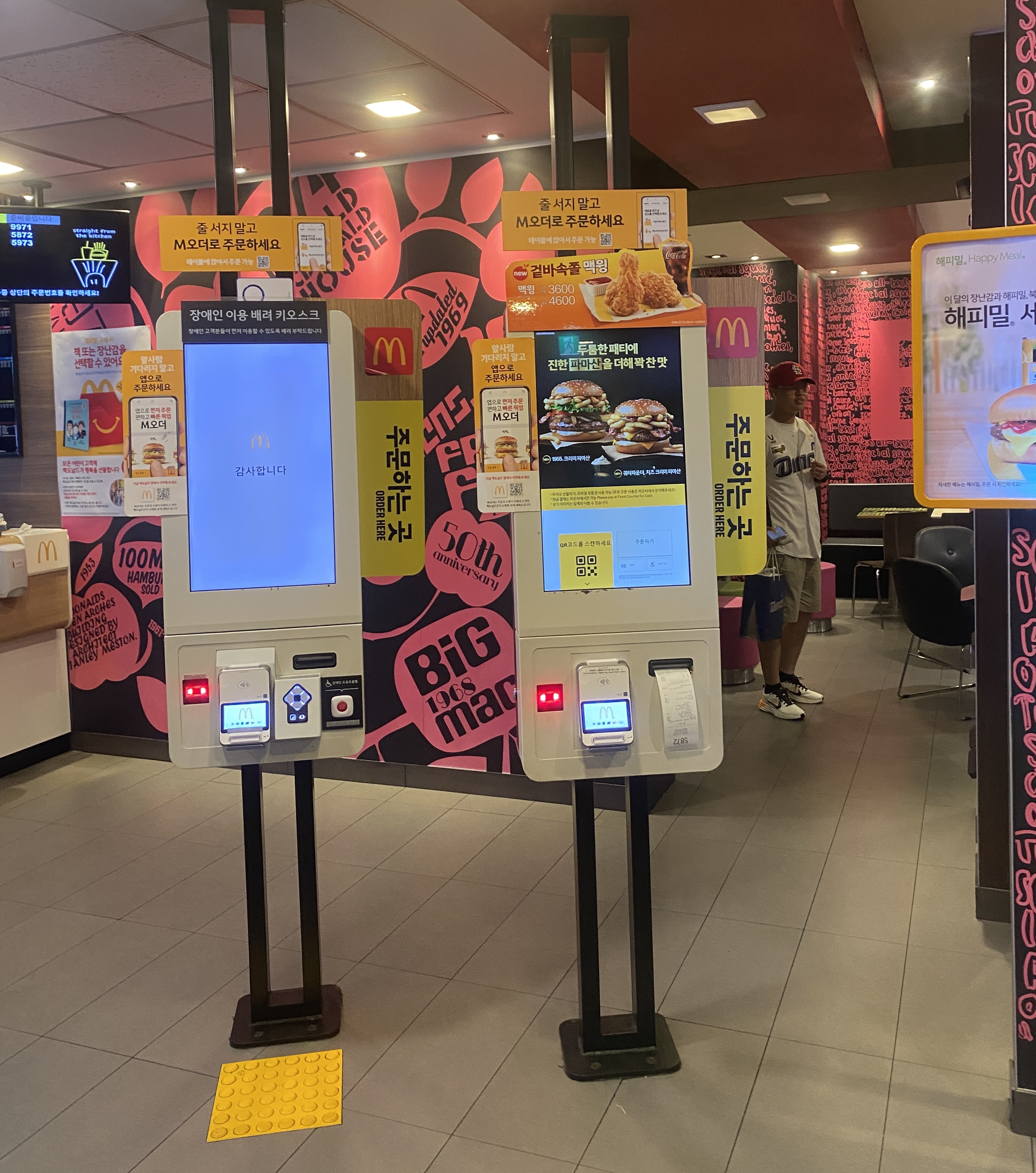 매장 입구에 들어서면 두 대의 키오스크가 손님을 맞이합니다. 덕분에 늦은 밤 10시가 넘어서 방문했음에도 불구하고 주문 대기 시간이 길지 않아 좋았어요. 빠르고 편리하게 주문을 마칠 수 있었습니다.