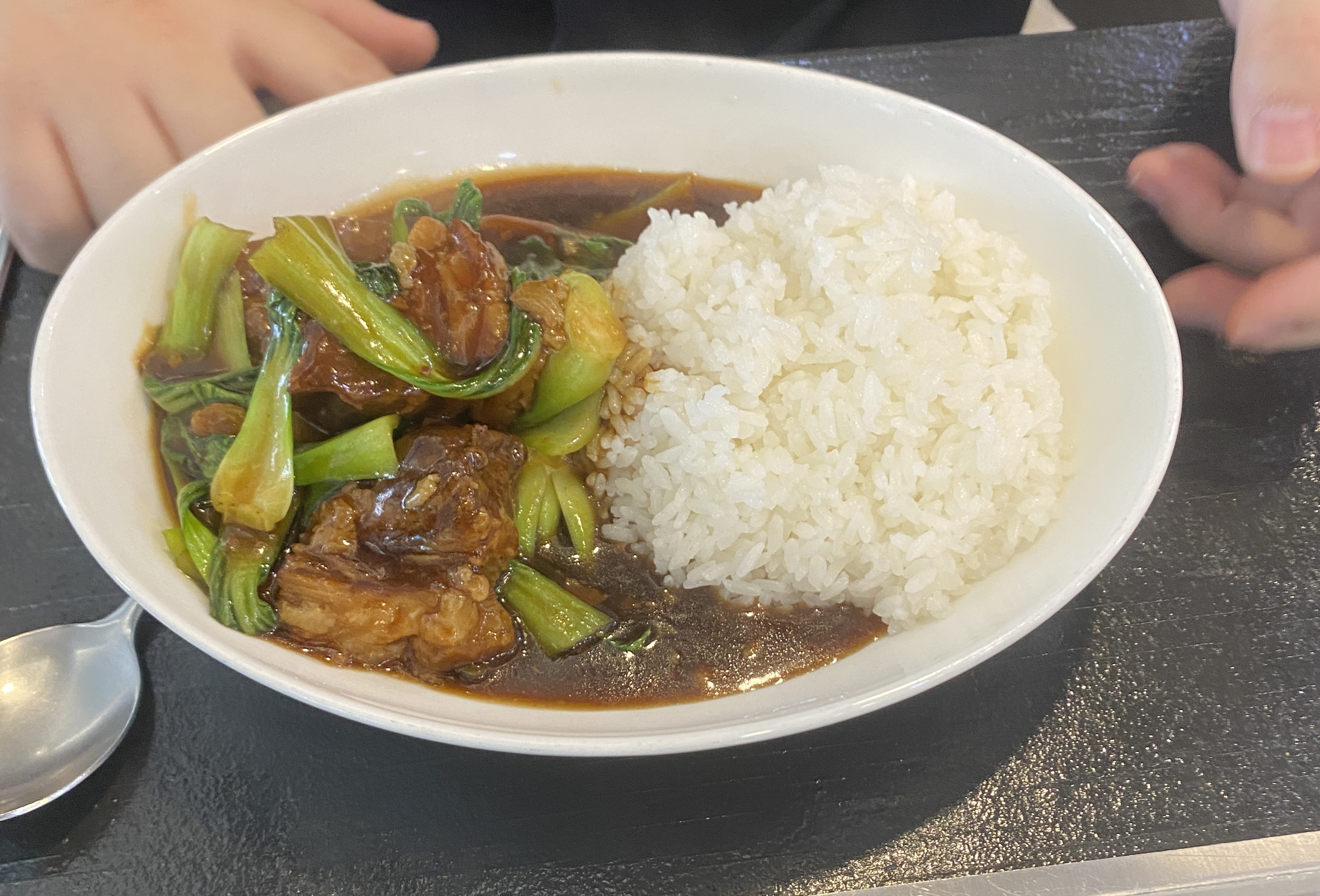 먼저 지인이 주문한 덮밥이 나왔는데, 중화권 음식 같은 비주얼이 시선을 사로잡았습니다. 중식을 좋아하는 지인의 취향에 딱 맞을 것 같았어요.