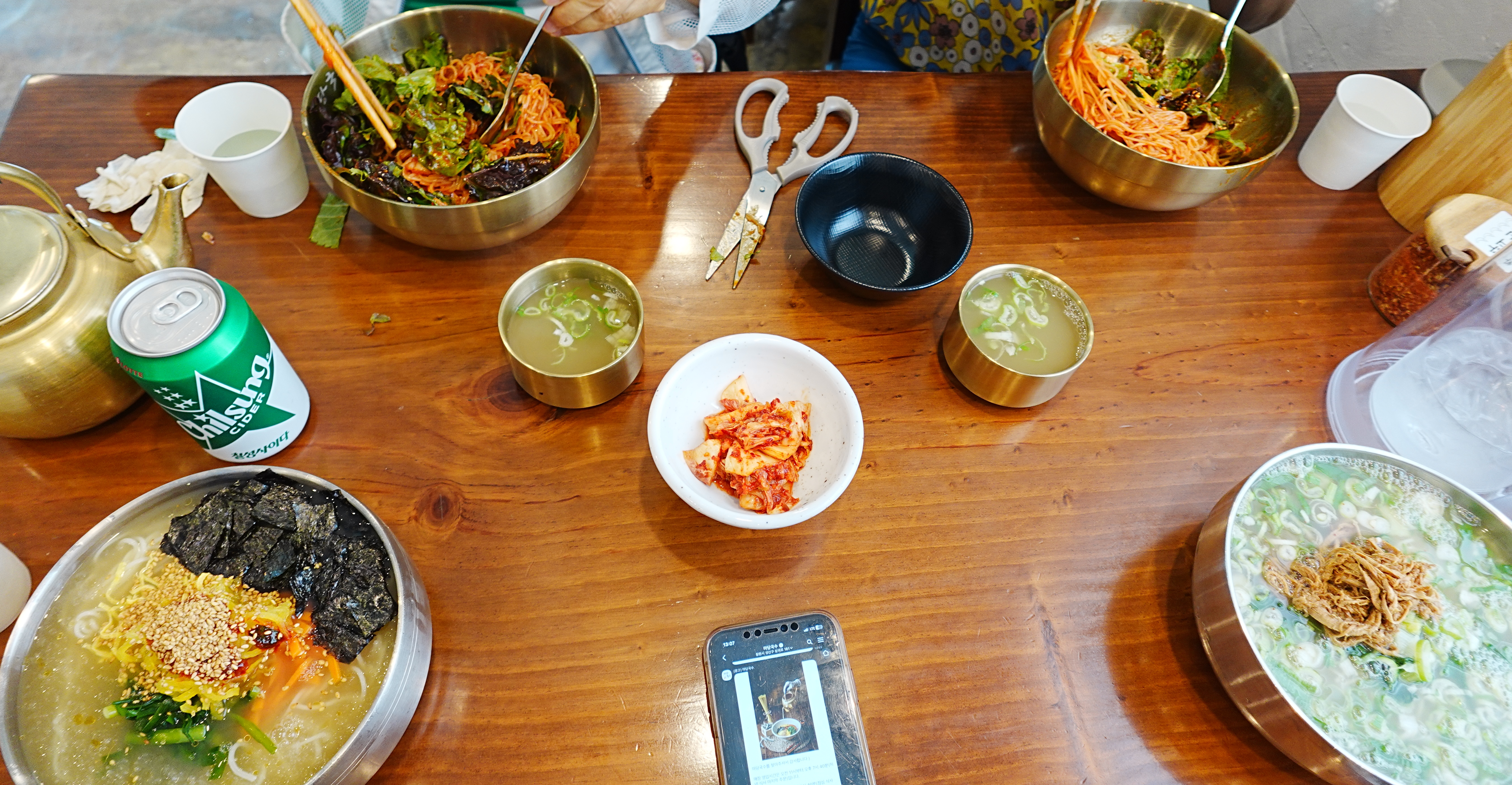 각자 곱배기로 주문한 메뉴들을 서로 나눠 먹으며, 더운 날씨에도 불구하고 정말 행복한 점심 식사를 만끽했습니다.