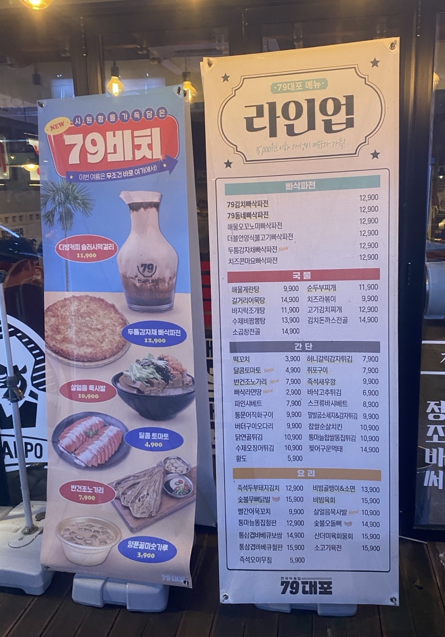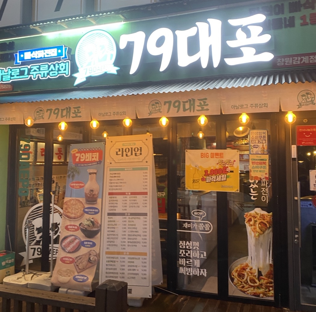 이번에 방문한 '79대포 창원감계점'은 프랜차이즈임에도 불구하고 맛과 분위기 모두 만족스러웠습니다. 무더운 여름날, 시원한 막걸리와 맛있는 안주를 즐길 수 있는 '한여름의 오아시스' 같은 곳이었습니다.
