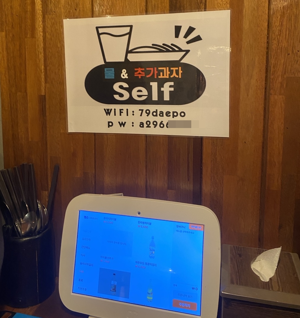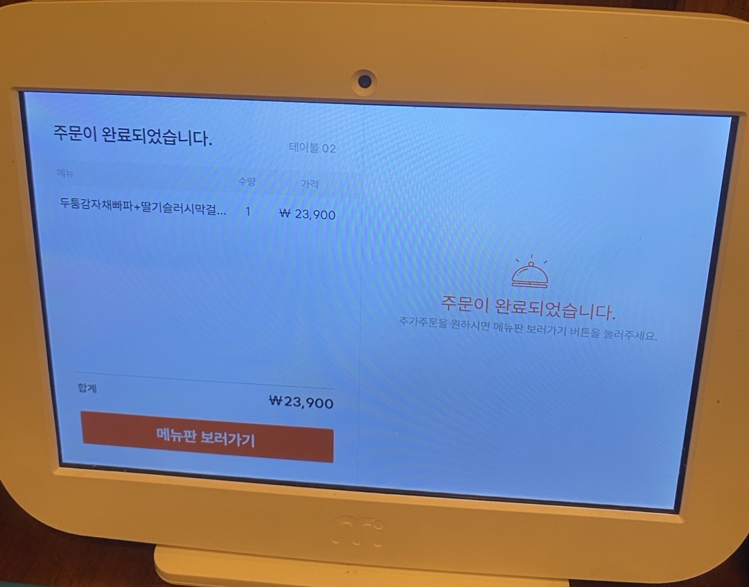 이곳은 메뉴판이 아닌 테이블에 설치된 태블릿으로 주문하는 시스템이어서 매우 편리했습니다. 최종 결제는 카운터에서 진행하는 방식이었습니다.