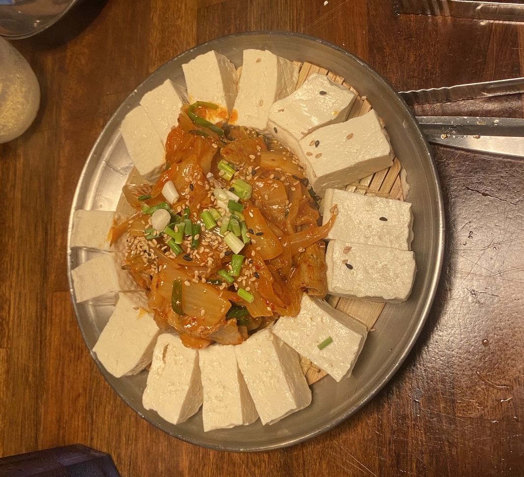 안주가 부족하여 두부김치도 추가로 주문했는데, 매콤한 김치볶음과 고소한 두부의 조화가 훌륭하여 막걸리뿐만 아니라 다른 주류와도 잘 어울리는 메뉴였습니다.