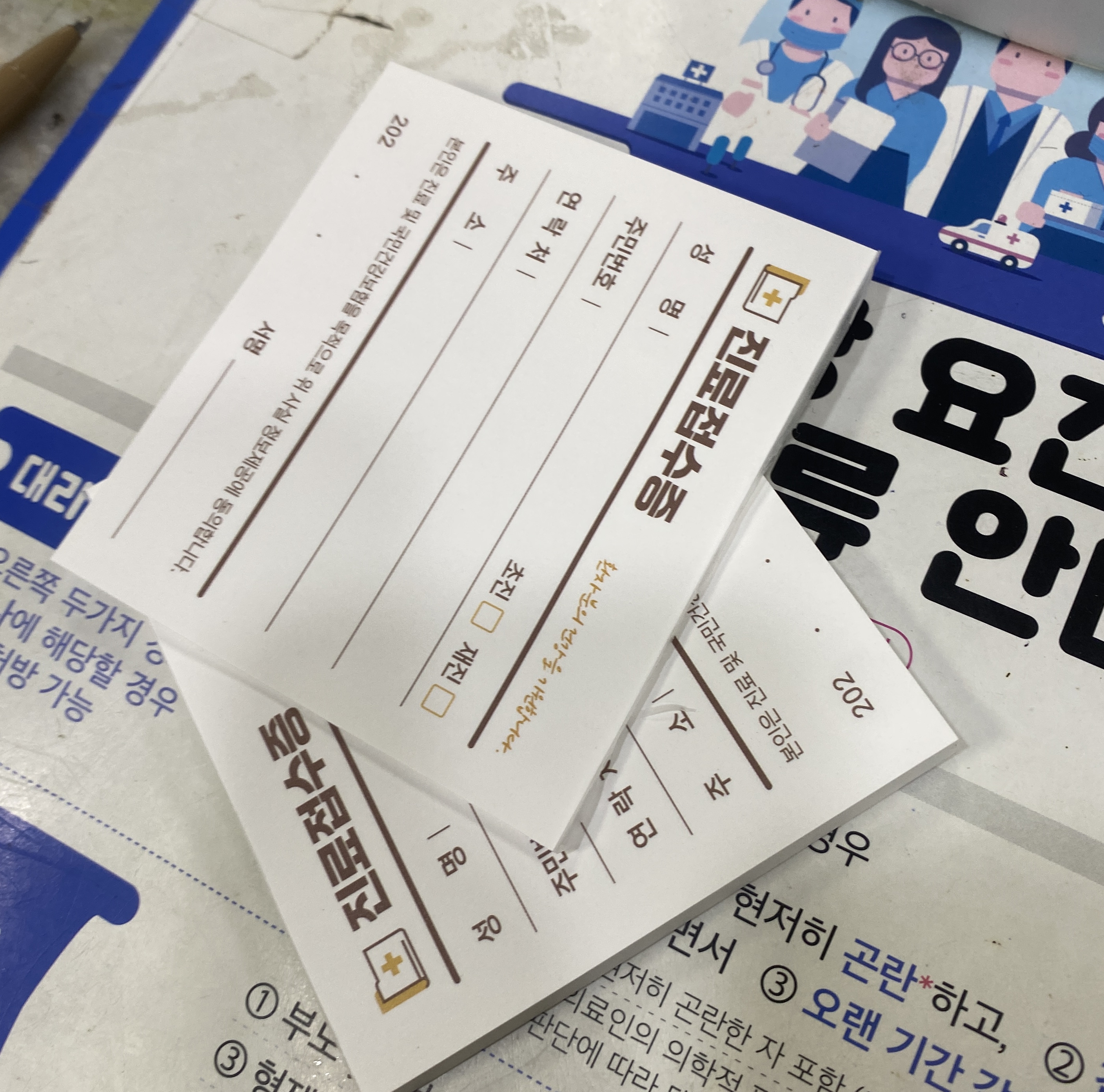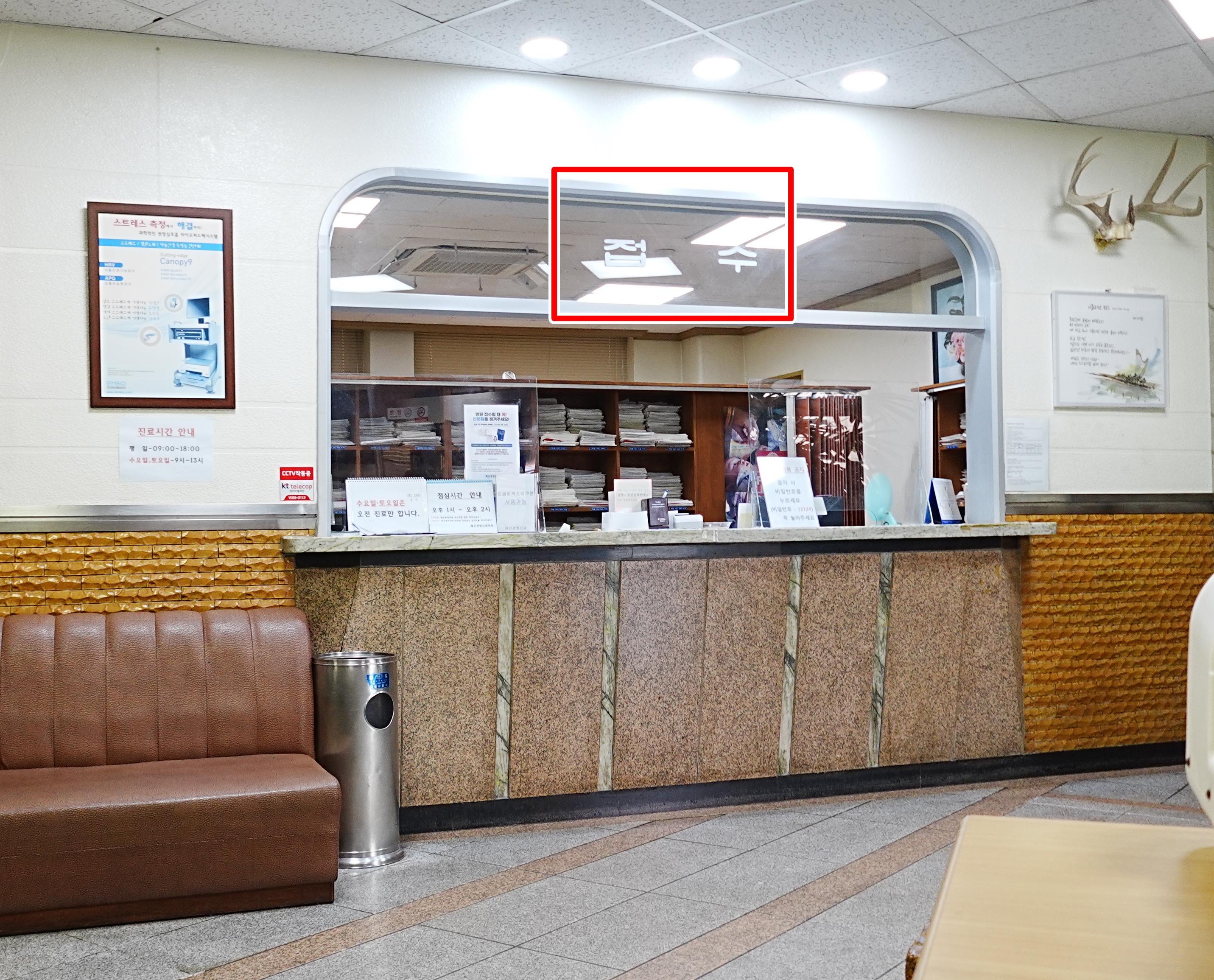 입구 맞은편 카운터에서 첫 접수를 했습니다. 마치 제가 국민학교 시절에 다녔던 병원처럼 오래된 느낌이 정겹게 다가왔습니다. 진료접수증에 인적사항을 기록하고 신분증을 제출한 뒤,