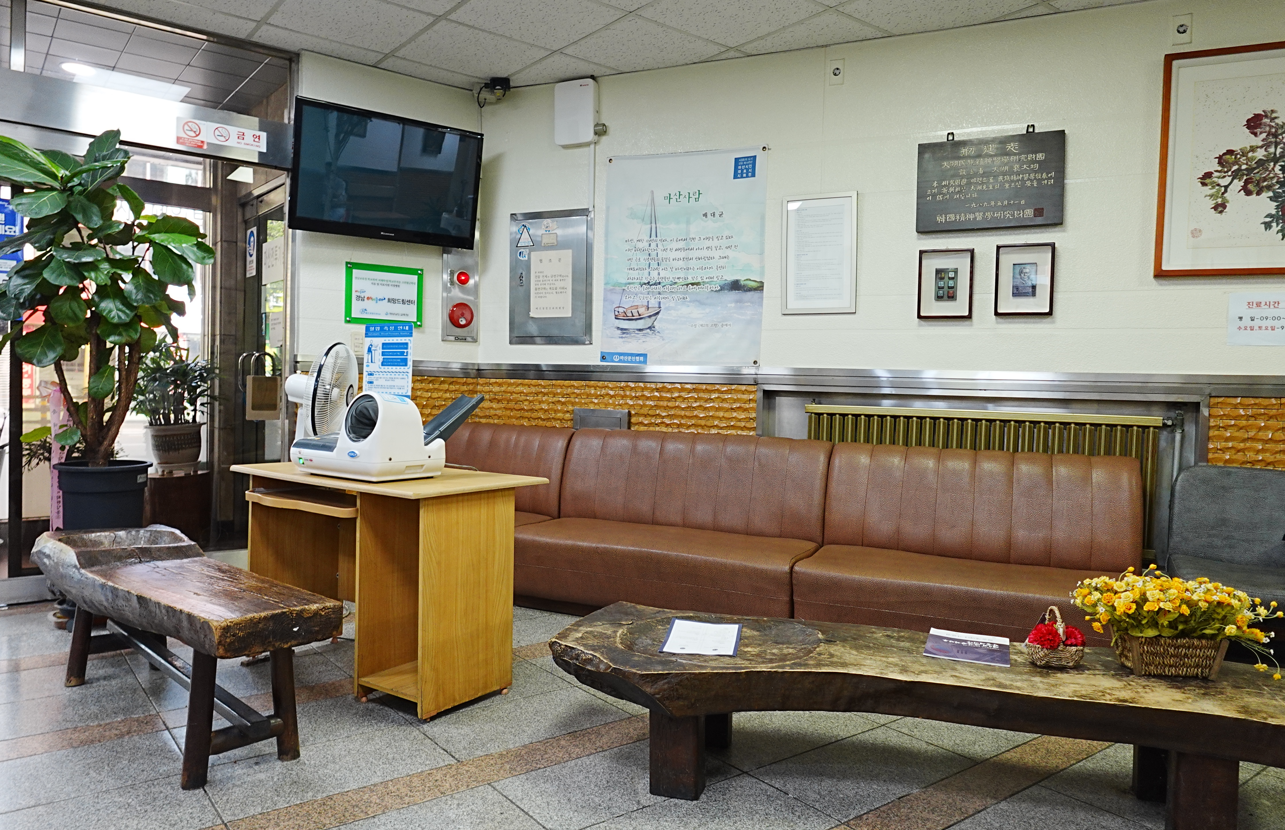 병원에 들어서는 순간, 의외의 풍경이 펼쳐졌습니다. 최소 40년 이상 된 건물이라서 그런지 앤티크함(혹은 노후함)이 물씬 풍겼습니다. 하지만 그 낡은 분위기 속에는 묘한 편안함이 있었습니다. 요즘 보기 힘든 기념 화환들도 곳곳에 놓여 있었고,