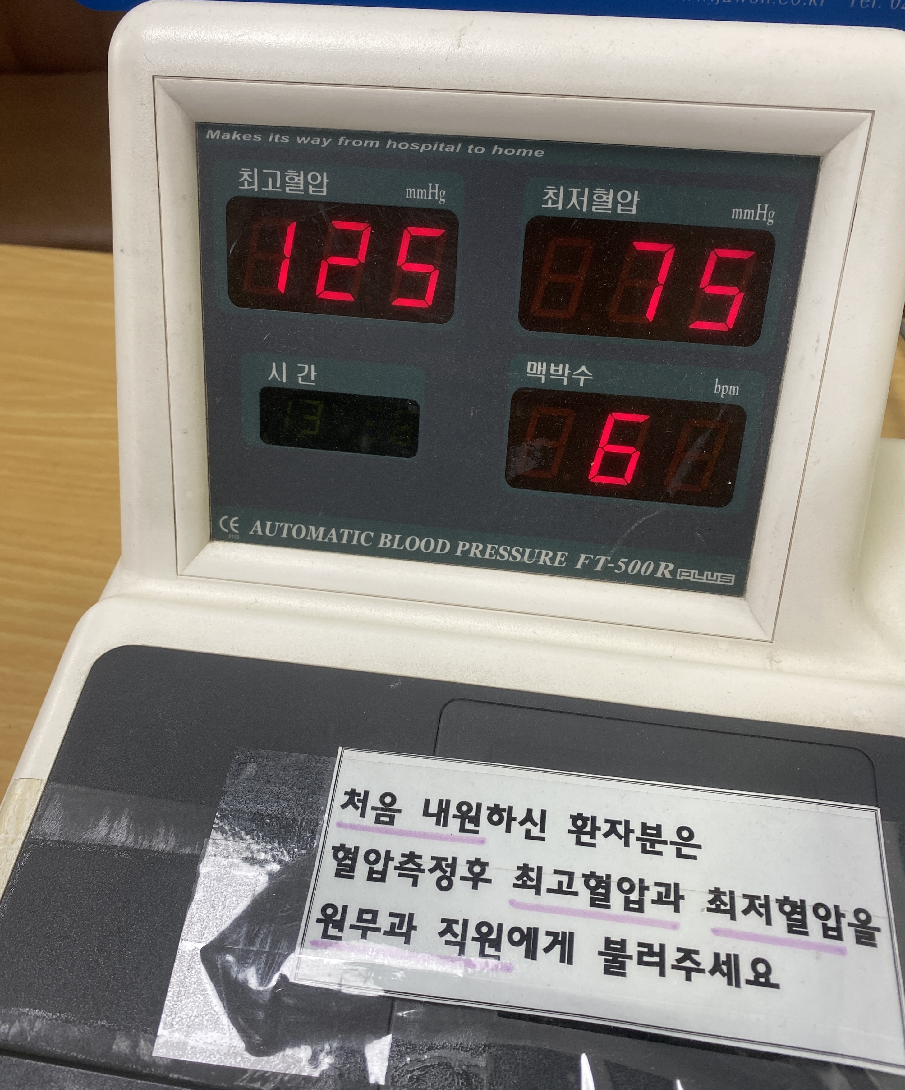 출입구에 있는 혈압기에서 혈압 측정을 해봤는데 다행히 정상 수치가 나왔습니다. 혈압이라도 정상이라니, 안도감이 들었습니다.