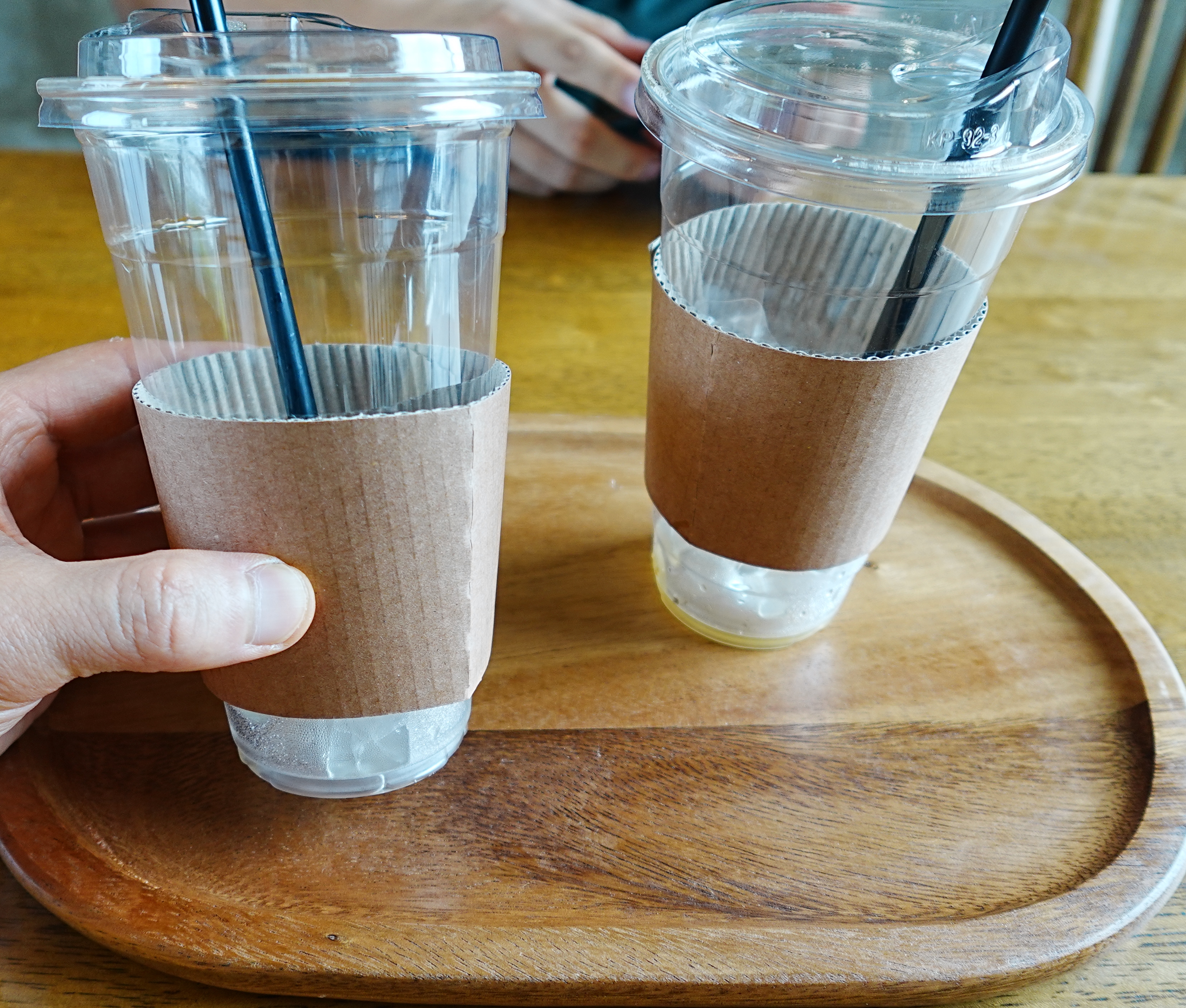 약 5분 후, 시원한 아이스 아메리카노 두 잔이 나왔습니다. 커피를 들고 저희만의 '아지트'에 자리를 잡고 앉아 창밖을 바라보니,