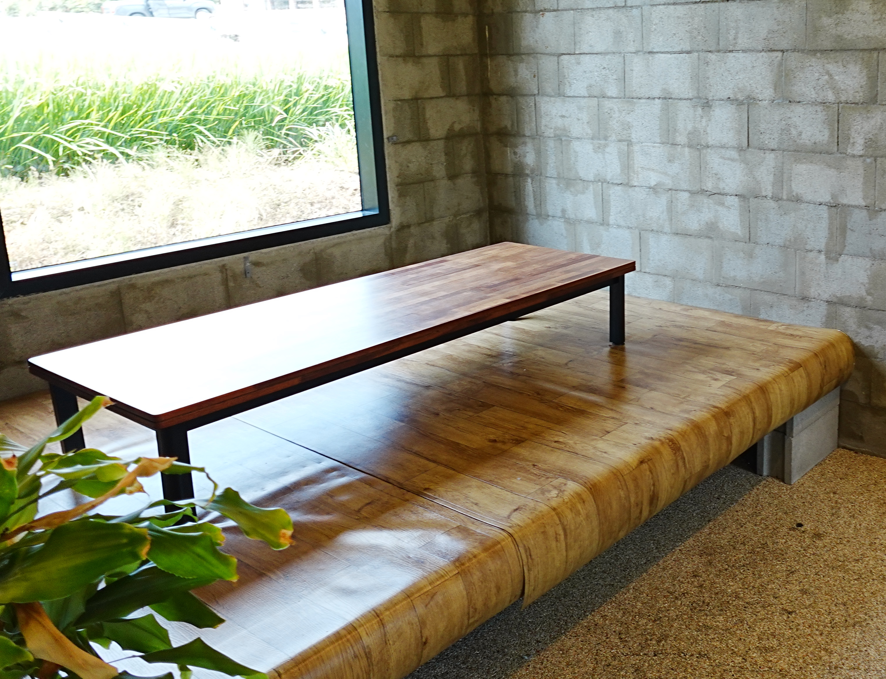 좌석도 범상치 않았습니다. 요즘 유행하는 캠핑 테이블이 놓여있었는데, 감성적이긴 하지만 너무 낮아 앉기는 불편해 보였습니다. 그리고 한쪽에는 보기 드문 좌식 테이블도 있었는데,