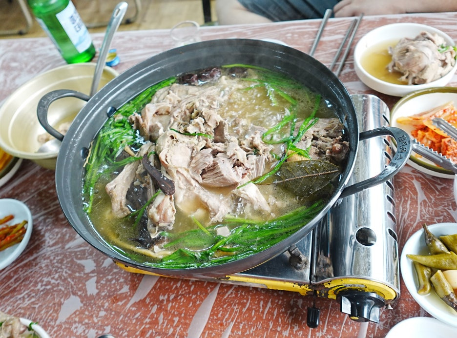 - 비주얼: 커다란 냄비 안에 다양한 한약재와 함께 푹 고아진 오리 한 마리가 영롱한 자태를 뽐내고 있었습니다.