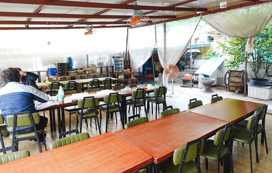 약수장가든은 내부로 들어가면 시원하게 펼쳐진 평상석과 테이블석, 그리고 좌식 공간까지 다양한 좌석을 갖추고 있습니다. 저희는 계곡을 더 가까이에서 느낄 수 있는 테이블석으로 자리를 잡았습니다.