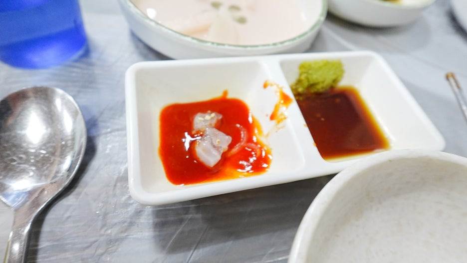 쫄깃한 오징어를 초장에 살짝 찍어 먹으면