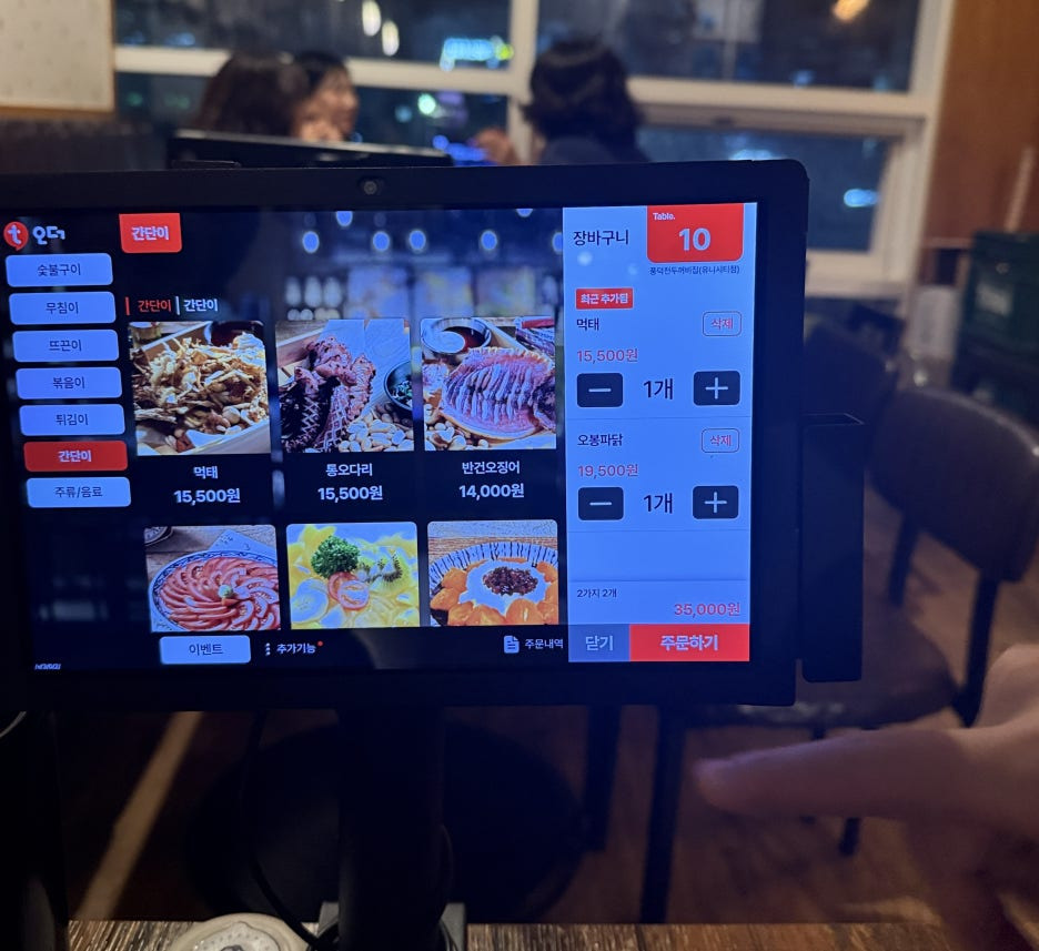 각 테이블마다 설치된 태블릿으로