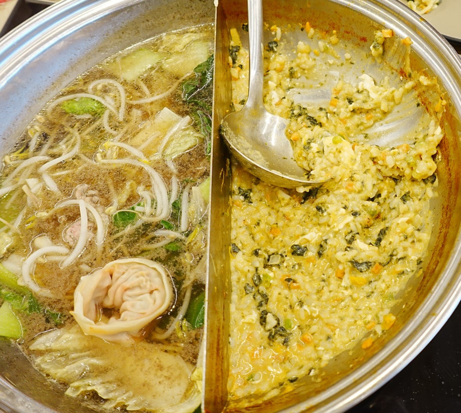 얼큰 육수와 담백 육수반반으로