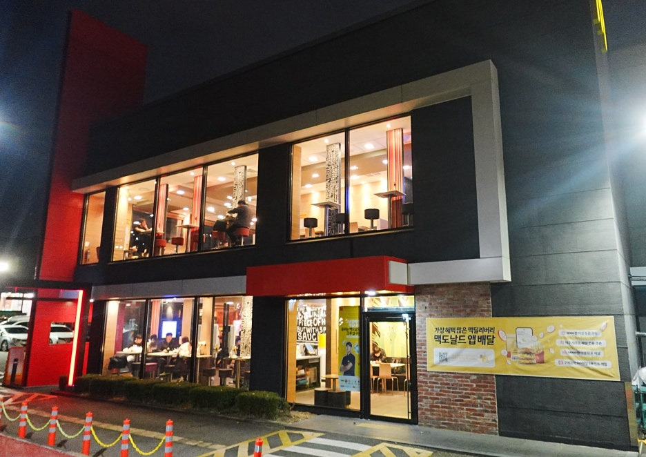 밤이라 그런지 2층의 맥도날드 건물이 더욱 세련되 보이네요