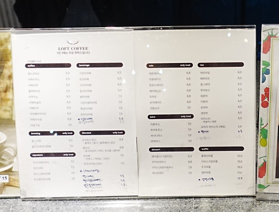 메뉴는 일반적인 카페의 메뉴가