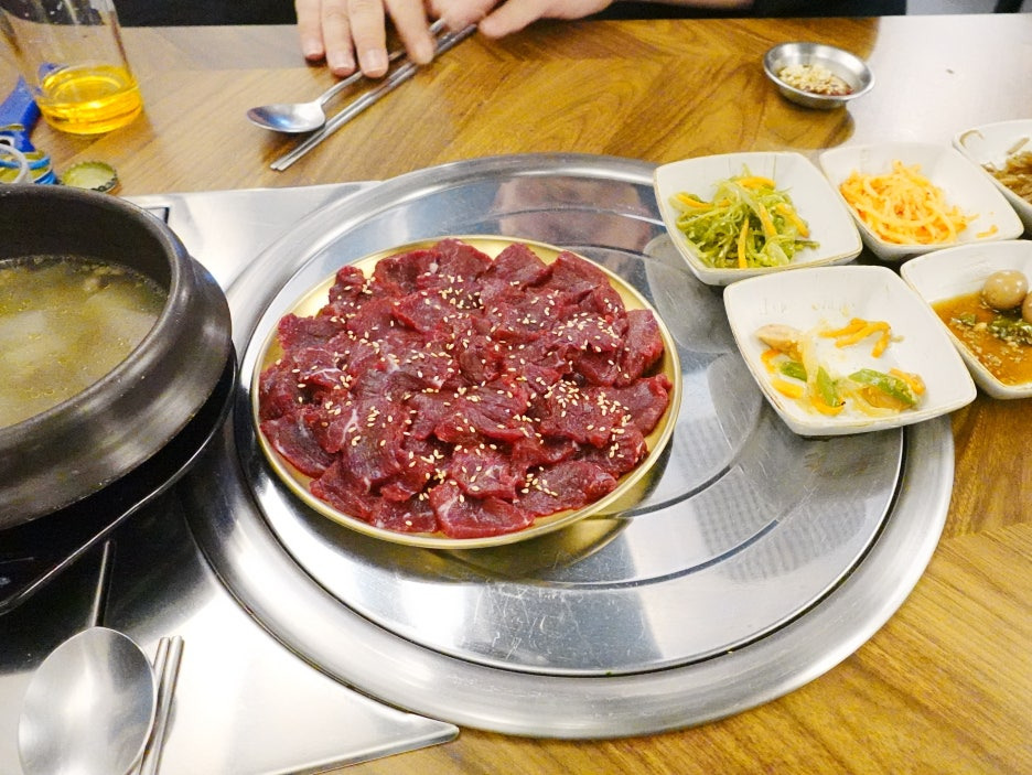뭉티기 나오면 그 신선도를 체크해보기 위해