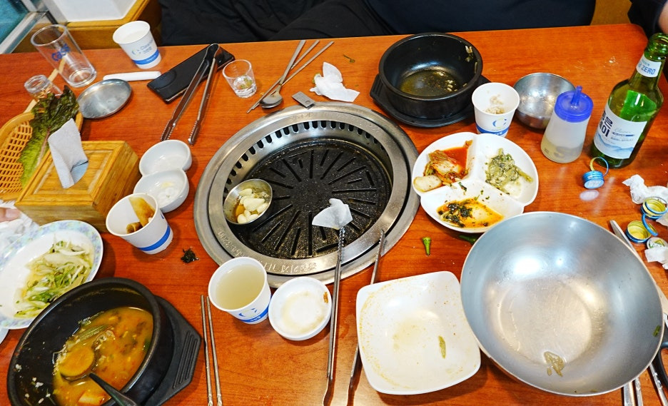 무엇을 먹던지 식후에 남은 고기와